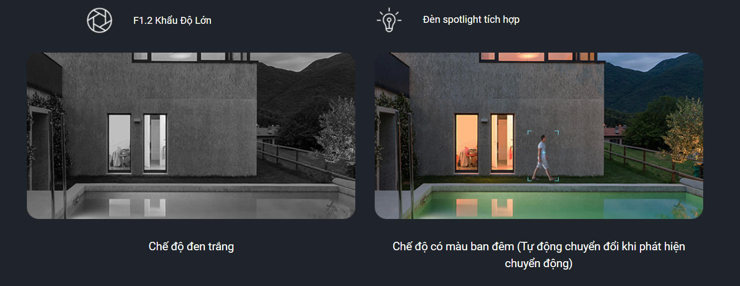 Trải nghiệm tầm nhìn đêm chưa từng có, xóa bỏ hoàn toàn nỗi lo hình ảnh mờ và nhiễu hạt. Được trang bị đèn spotlight tích hợp, CB8 Pro tái hiện khung cảnh đêm một cách chân thực và sắc nét đến từng chi tiết, ngay cả trong điều kiện ánh sáng yếu. Đặc biệt, bạn có thể thoải mái lựa chọn giữa hai chế độ nhìn đêm, tối ưu hóa khả năng quan sát theo ý muốn.